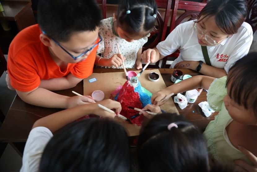 首先,实践队员和小朋友们共同制作驱蚊水,亲眼见证了天然、普通的植物摇身一变成为守护夏日清凉的秘密武器。紧接着,一场震撼人心的“火山喷发”小实验在孩子们的惊叹声中上演,红色的“岩浆”喷薄而出,模拟了自然界中壮观的火山奇景,这一刻,科学的力量让孩子们仿佛置身于地球的脉动之中,激发了他们对自然界无尽奥秘的无限好奇与向往。