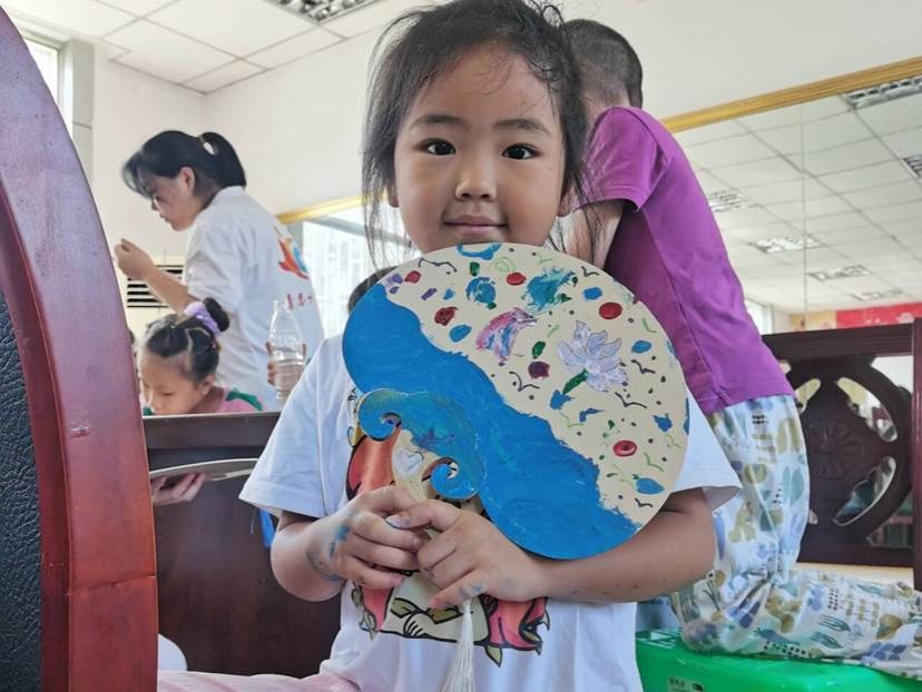 图1 贾嗣镇的小朋友展示自己绘制的扇面画