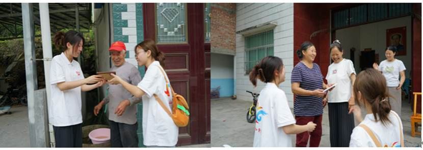 为了尽快让村民们拿到自己的照片,拍摄完成后,实践队第一时间将将照片打印出来冲洗、装入相框,还来不及休息又踏上了送照之旅。当村民们从实践队队员手中接过那些记录着自己日常生活的照片或者大胆的艺术照时,原本平静的脸上立刻绽放出了惊喜和感动的笑容。其中一位老奶奶激动的拉着实践队队员的手说:“我真的十分感谢这群孩子的你们到来,他们你们充满了朝气与活力,踏入我们村子后,就仿佛一缕春风,给我们乏味的生活增添了许多的欢乐。”村民们仔细的看着实践队队员送来的照片,目光中满是对这些画面的喜爱与珍视。这些照片中有小朋友在村口嬉戏玩耍的画面,也有村民在拨弄着自己种的土豆的场景,更有槽心村那如画如诗的美丽风景。那一份份被定格的美好瞬间,化作一条无形的纽带,将实践队与槽心村村民的心灵紧紧的链接在一起。