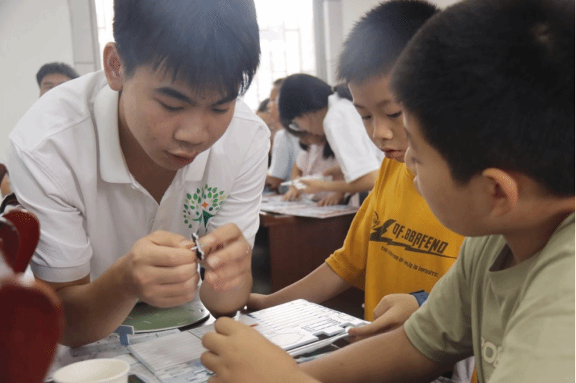 宣讲现场还设置了 “大国重器面对面” 环节,实践队员详细介绍歼–20 隐身战斗机的隐身技术、天问一号火星探测器的探测使命、奋斗者号载人潜水器的深潜突破等科技成就。当屏幕上出现航天器翱翔太空、潜水器探秘深海的画面时,孩子们眼中闪烁的好奇光芒,成为乡村少年对科技探索最真挚的表达。随后的 “小小科学家” 实践环节中,孩子们对照图纸认真组装神舟十三号、长征七号等火箭模型,零件拆装的细微声响与成功后的欢呼雀跃交织,让课堂变成了充满创造力的科技实验室,进一步将爱国情怀转化为动手实践的动力。