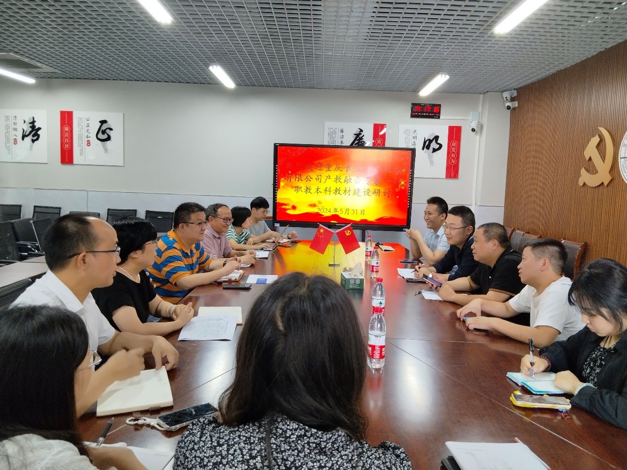 为深化公司教材体系建设,提高公司教材选用质量,搭建智能网联汽车工程技术职教本科专业教材建设的平台,5月31日,重庆长安汽车股份有限公司产教融合事业部高级经理郭锐和智能化研究院技能大师蔡渝东一行5人到访公司太阳网集团tcy8722,召开智能网联汽车技术本科专业教材建设研讨会。副经理王勇及智能网联汽车工程技术职教本科专业部分教师参加了座谈会。