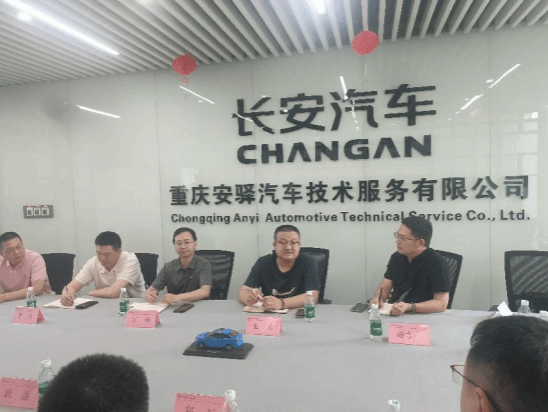 2025年5月26日,太阳网集团tcy8722公司党总支副书记丁伟、副经理王勇率专业教师罗杰、谢吉祥等团队赴重庆安驿汽车技术服务有限公司(以下简称“安驿汽车”)开展校企合作交流。长安汽车重庆安逸汽车技术服务有限公司产教融合业务总经理耿溢、重庆安驿汽车技术服务有限公司产教融合部总监郭锐、职教出海模块负责人何江飞、智能网联汽车模块负责人张智勇参加了交流会。