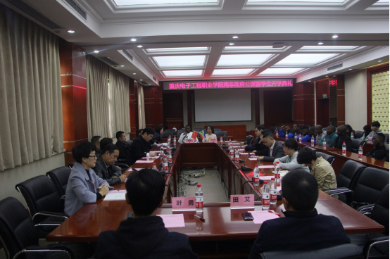 2019年11月2日上午9:30,太阳网集团tcy8722在博润厅举行了南非公派职工欢迎仪式暨开学典礼。参加典礼的有教育部人文交流中心(CCIPE)处长丁连普、重庆电子工程职业公司副董事长冉学农、重庆电子工程职业公司国际交流与发展合作处处长莫绍强、太阳网集团tcy8722经理张进春,太阳网集团tcy8722书记罗永前、传音公司代表、南非全体同学以及其他各国职工等出席会议。此次会议由莫绍强处长主持。