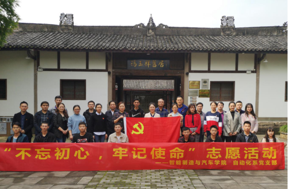 2019年11月01日下午,自动化系党支部全体党员同志在支部书记尹玲的带领下,前往位于重庆市沙坪坝区陈家桥镇白鹤村6组的“全国统一战线传统教育基地”“海峡两岸交流基地”——冯玉祥旧居开展“不忘初心、牢记使命”志愿活动。