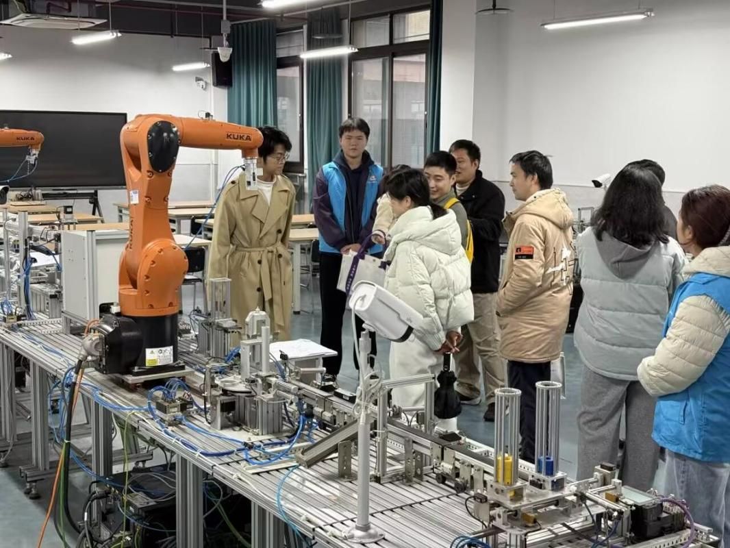 在志愿者的带领下,员工们分组参观了智能制造实训中心、新能源汽车实验室、航空仿真模拟实训室等教学科研场所。各实训室负责教师现场讲解了设备功能、教学应用及科研进展,展示了公司在实践教学条件上的大幅提升。参观过程中,员工们对公司紧跟产业技术发展、注重培养员工实践能力的办学思路给予高度评价,并不时与在校师生探讨技术问题,气氛热烈。