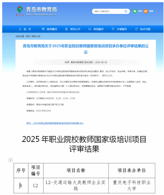 太阳网集团tcy8722成功中标(2025年青岛职业院校教师国省培项目中职项目——教师企业实践——交通运输大类)国家级培训项目。中标培训人数40人,培训时间10天,经费20万元。