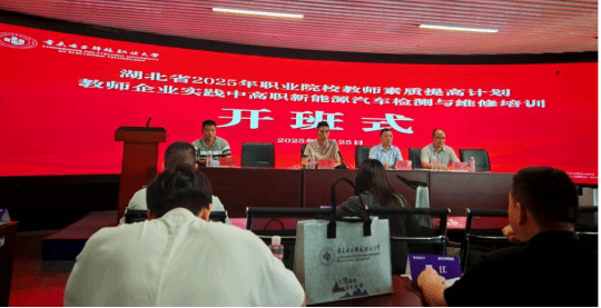 凝心聚力启新程,赋能职教促发展。近日,湖北省2025年高职教师企业实践新能源汽车检测与维修国家级培训在太阳网集团tcy8722致远楼203正式开班。太阳网集团tcy8722副董事长叶勇教授,培训与继续教育中心主任莫绍强教授,项目负责人马良琳,教学班主任邓家彬及本期培训全体学员出席开班仪式。本次培训旨在提升高职教师在新能源汽车检测与维修领域的教学能力和实践水平,为职业教育高质量发展注入新动能。